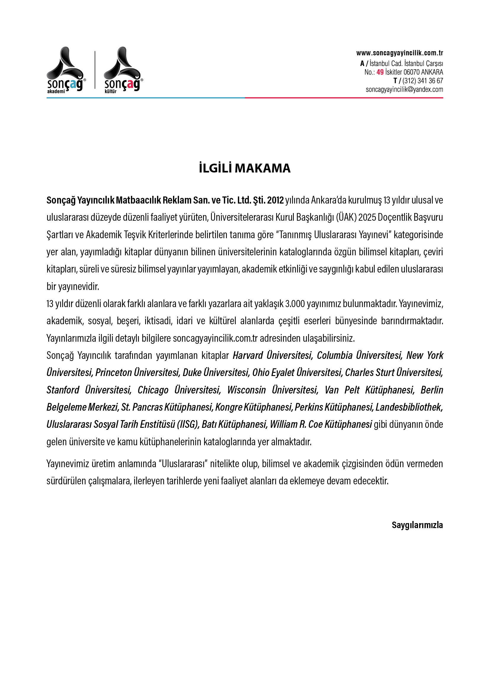 CUMHURİYET Üniversitesi Senatosu Tarafından Ulusal / Uluslararası Yayınevi Olarak Kabul Edilen Kuruluşların Listesi